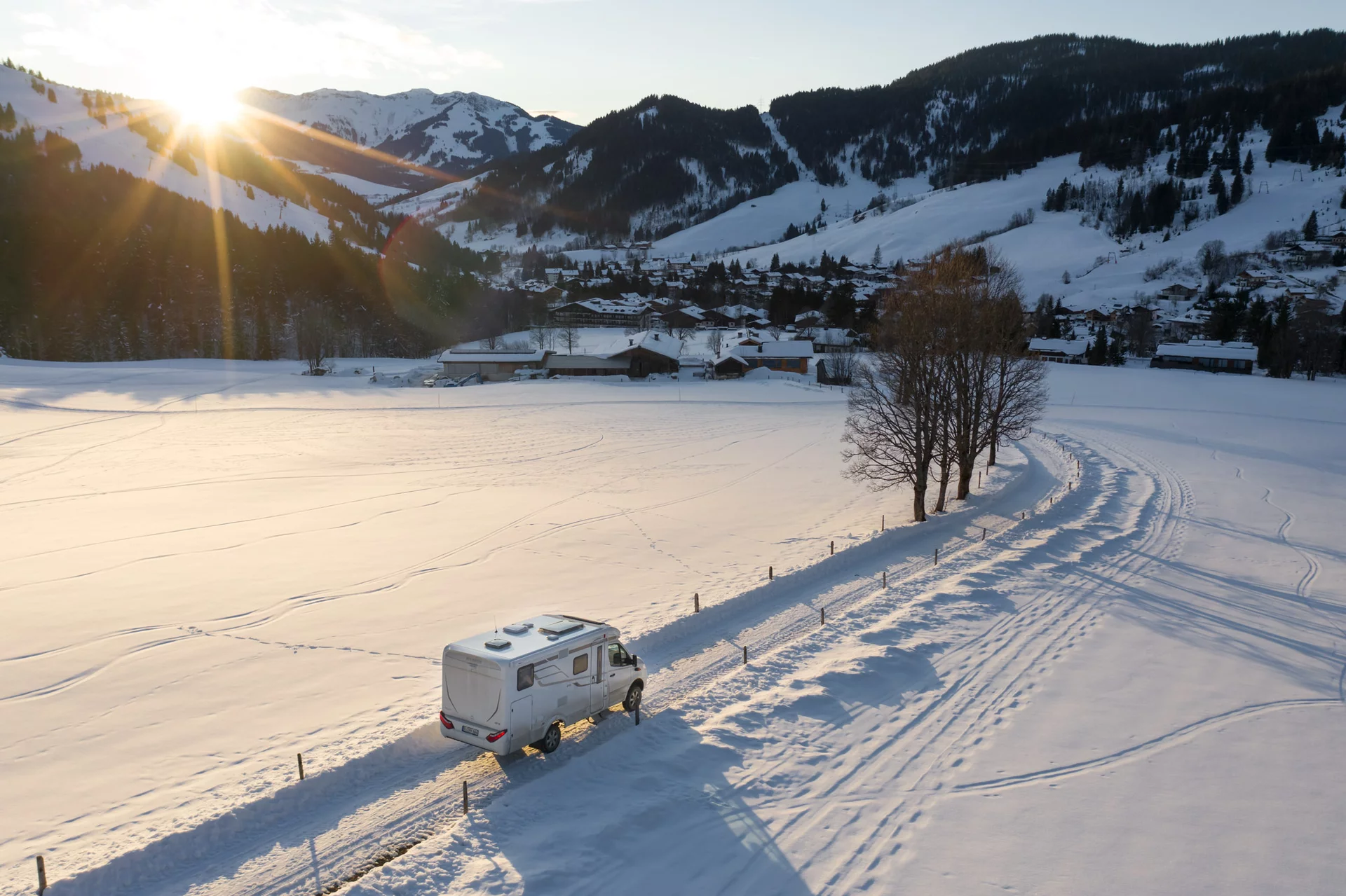 Le chauffage avec minuterie intégrée et une douche chaude dans le camping-car valent de l'or après une journée dans la neige.