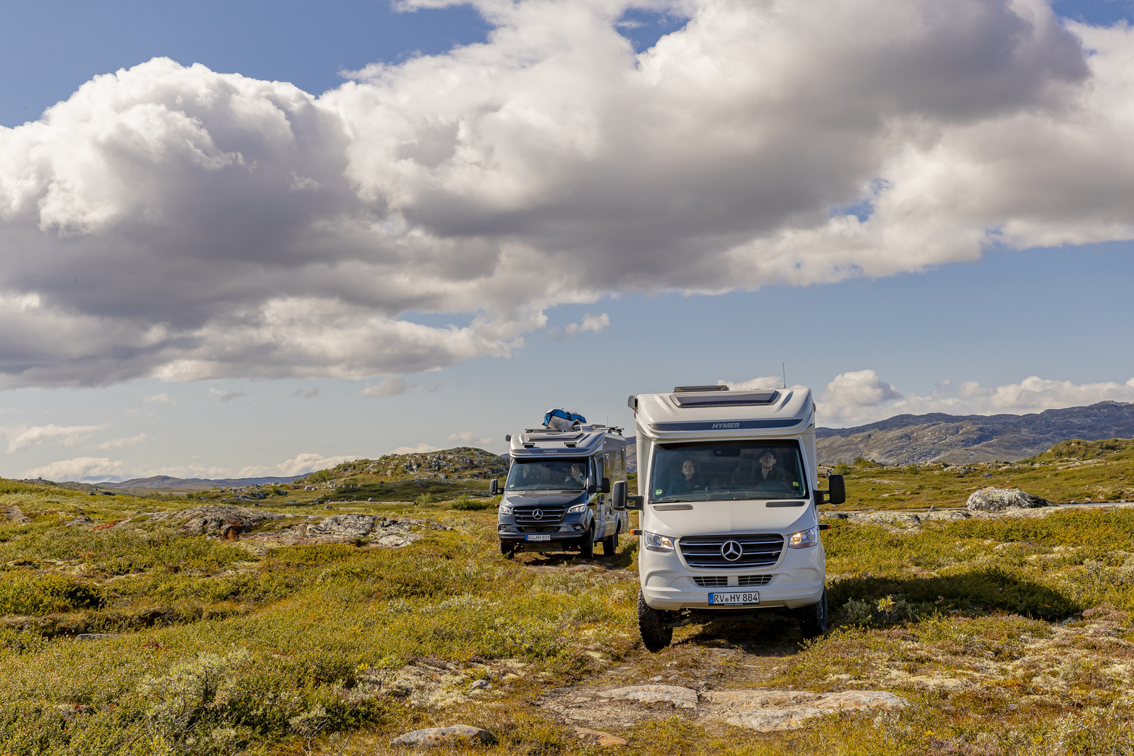 Een nieuw avontuur voor Peter Lintner, zijn familie en huisvriend Hannes begint deze keer met hun ogen gericht op Noorwegen. En deze keer zijn ze niet alleen met één HYMER onderweg - nee, zelfs met twee. Met de HYMER ML-T 570 4X4 en HYMER ML-T CrossOver gaan ze op reis naar het koude noorden.