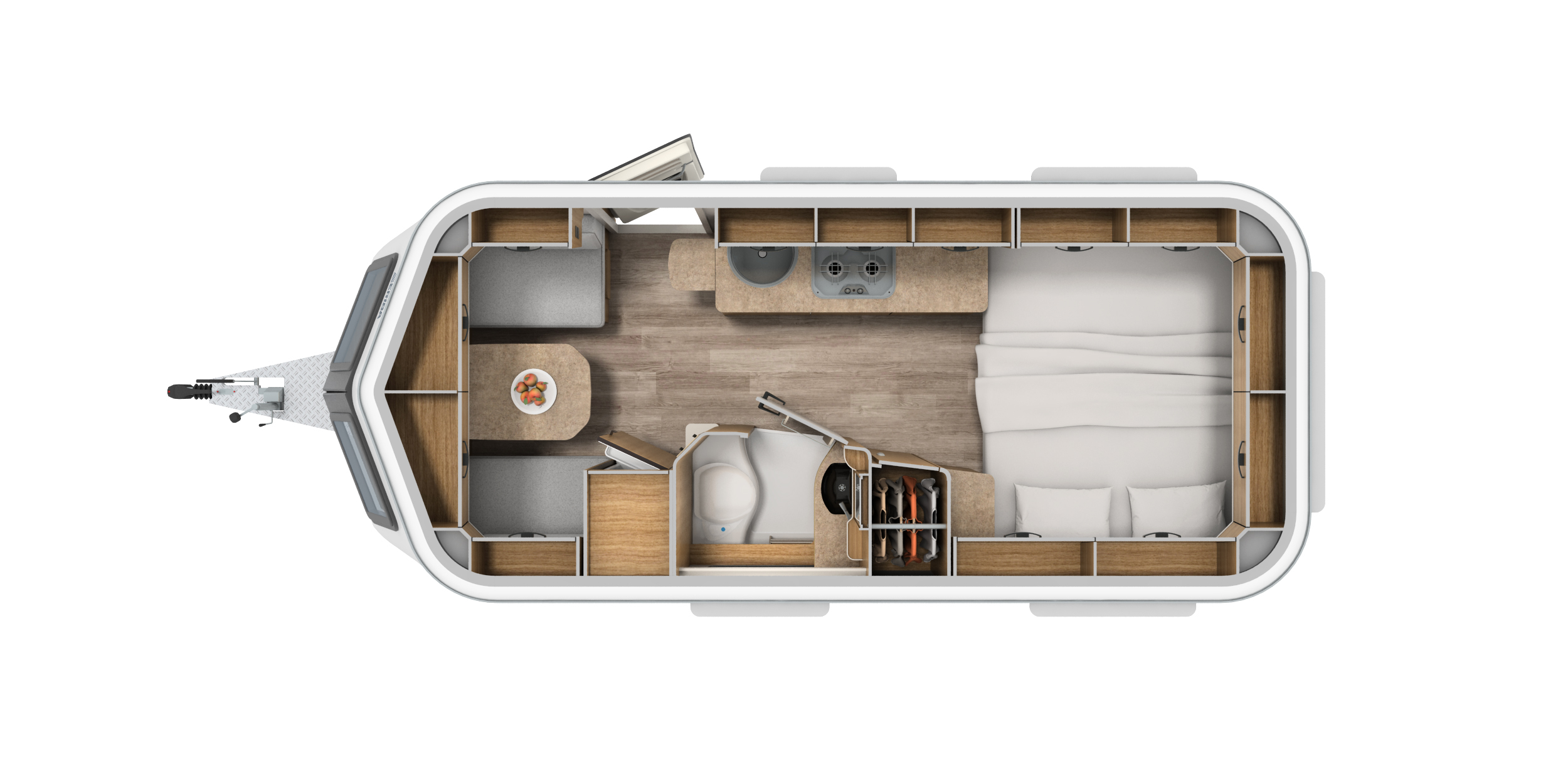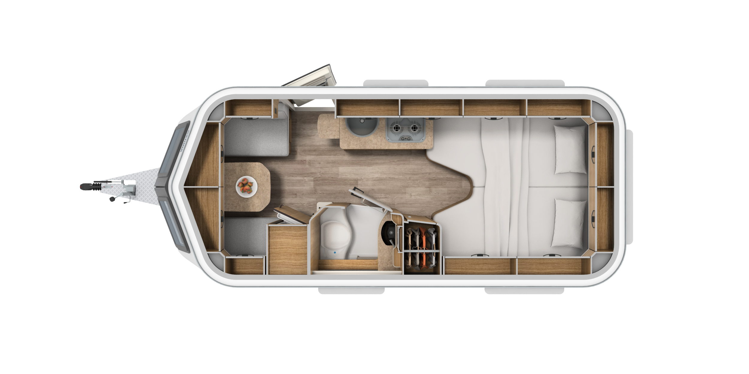 Komplementiert wird die Eriba Touring Serie zudem mit zwei neuen Grundrissen. Der Touring 630 und 642 bieten das für Touringmodelle so typische Wohngefühl, viel Stauraum, eine komfortable Stehhöhe sowie ein geringes Eigengewicht und stellen damit die idealen Begleiter dar. Der Touring 630 verfügt über ein Querbett im Heck mit einer Liegefläche von 155 x 205 cm, im 642er findet sich ein Längsbett mit einer Liegefläche von 200/210 x 205 cm. Dank optionalem Schlafdach, welches beide Modelle mit einer Liegefläche von 200 x 138 cm ergänzt, wird die Schlafkapazität auf bis zu fünf Personen erweitert und bietet so Platz für die ganze Familie. Damit auch alle versorgt sind, kommen die neuen Tourings mit einem großen Kühlschrank mit 133 Liter Fassungsvermögen. So wird die Verpflegung auf Reisen zum Kinderspiel. Extra Stauraum findet sich zudem unter den Betten, dank Verzurrmöglichkeit kann hier auch sperriges Gepäck gut gesichert werden.