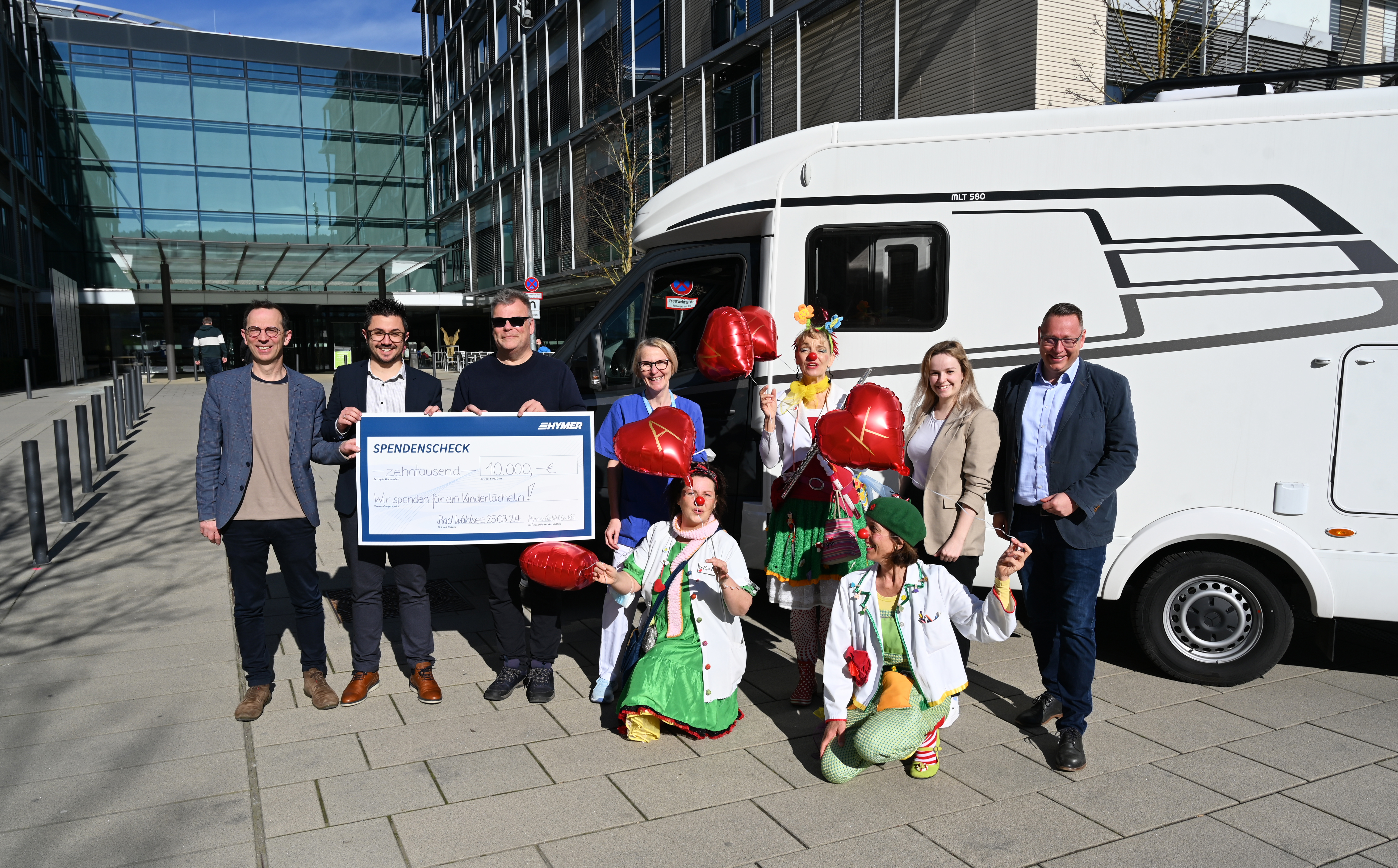 Die Partnerschaft zwischen der Hymer GmbH & Co. KG und den Lachmuskel Klinikclowns der Oberschwabenklinik in Ravensburg erfährt auch dieses Jahr durch die von Hymer initiierte Aktion „Wir spenden für ein Kinderlächeln“ eine Fortsetzung. Insgesamt konnte eine Spendensumme von 10.000 Euro erzielt werden.