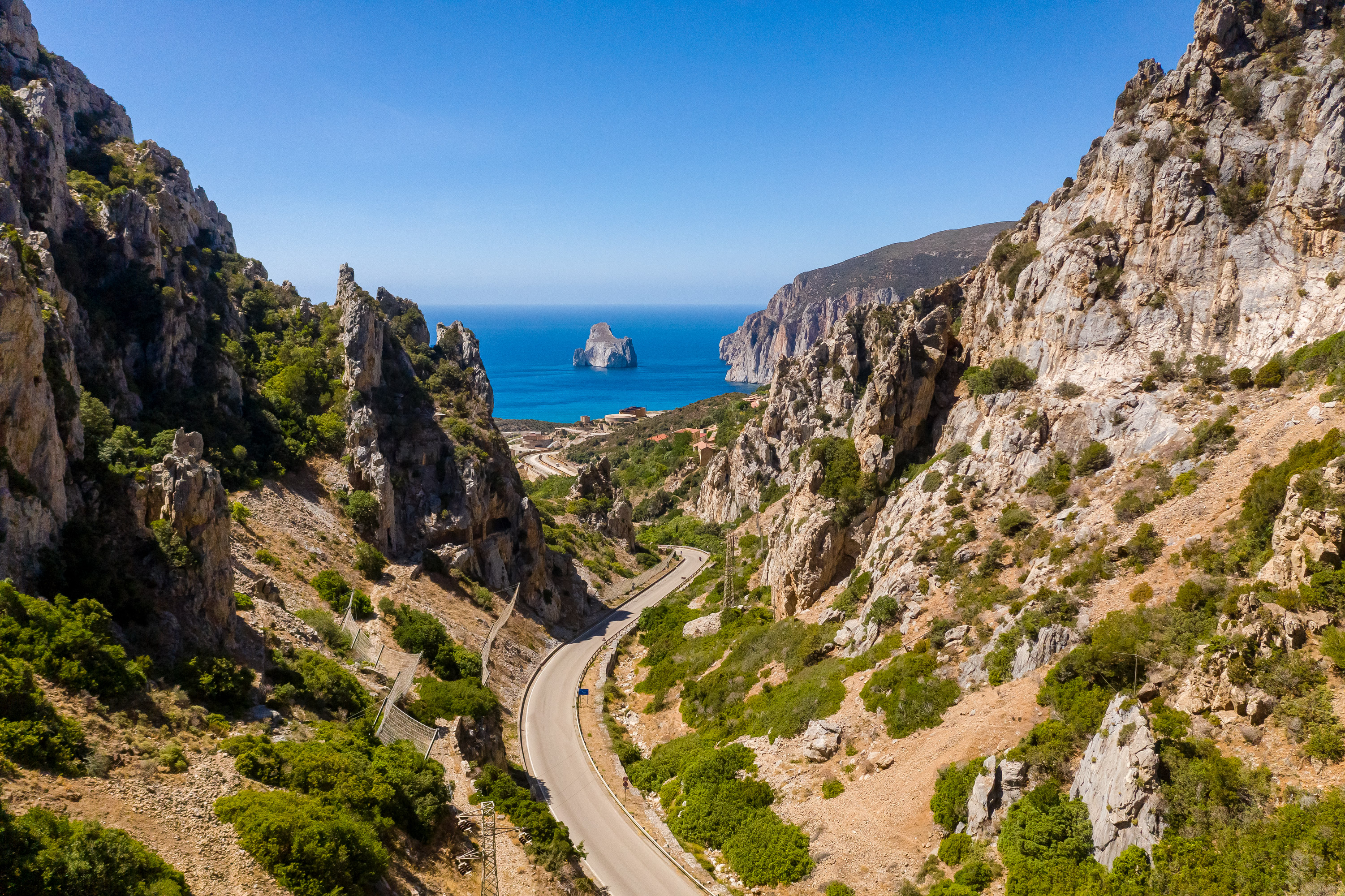 We continue on the mountain roads of the 24,000 km2 island. Jerzu and Ulassai, small colourful mountain villages in the sunset, Sardinian nature and culture take your breath away - the rocks in the red evening light form a dreamlike backdrop. Off to Urzulei, the Eldorado for adventurous hikers, very close to “Punta La Marmora”, which, at 1,843 m, is Sardinia's highest mountain. At “Supramonte Urzulei” turn left and follow the road for a short distance. At a narrow bulge with an abyss, both left and right high above the valley, there is a breath-taking view through the large panorama window over Urzulei and Sardinia's mountainous landscapes.