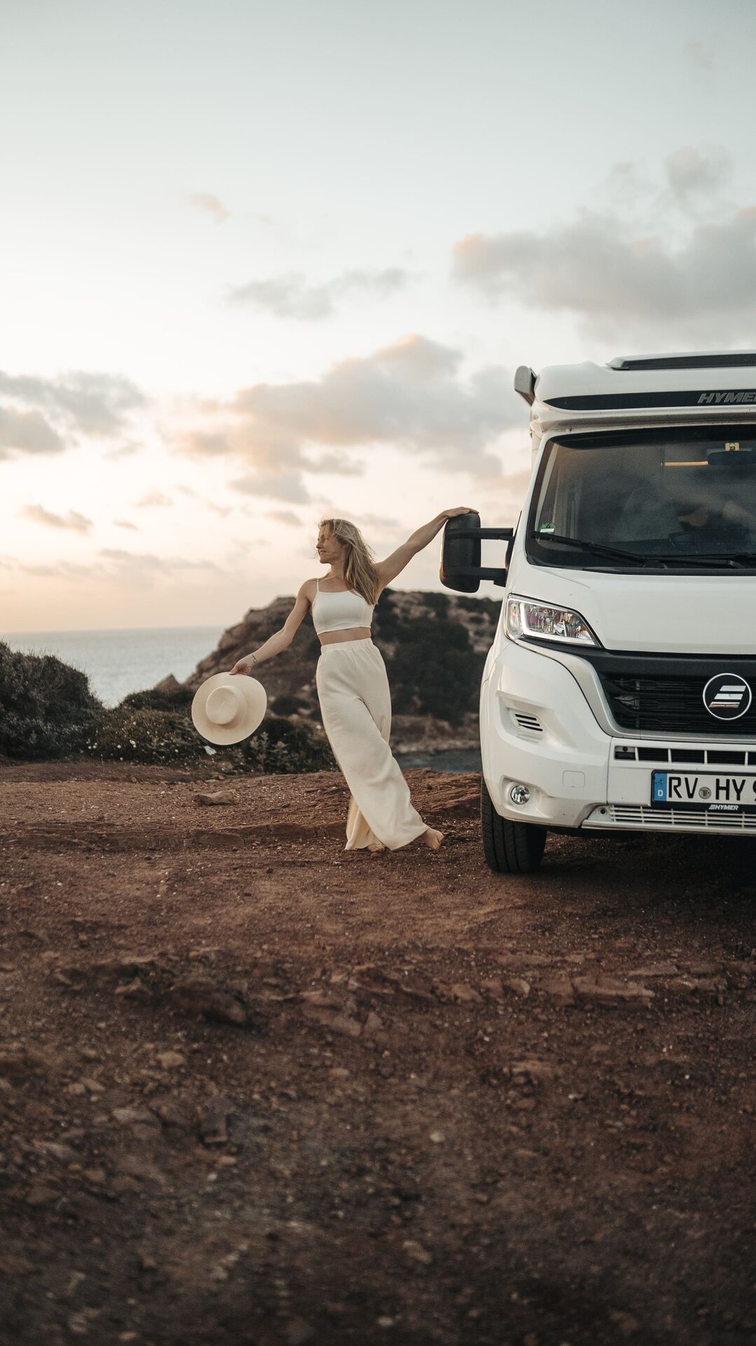 Næste dag udforskede vi den maleriske by Bosa med sine farverige huse, der klæber som en regnbue til bakkerne. Vi slentrede gennem de snoede gader, opdagede skjulte steder og nød ud over den lokale gæstfrihed selvfølgelig også en fantastisk pizza. Om aftenen kørte vi til Alghero, en charmerende kystby, for at iscenesætte HYMER Exsis-t 580 Pure ved en spektakulær solnedgang og nyde den betagende udsigt fra Capo Caccia. Lad os være ærlige: Da vi så vores HYMER i det aftenrøde lys foran os, kom det flotte design virkelig til sin ret. Med sine elegante letmetalfælge og sporty udseende er det den perfekte plakatmotiv. ?