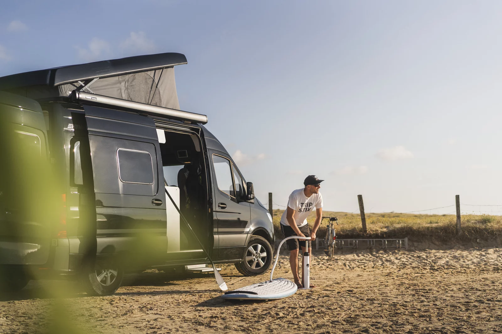 Two surfers, eight boards and one HYMER Free S 600! It all started ten years ago when Stefan Klare came up with the idea of building inflatable stand-up paddle boards – only with a difference. With specially developed technology: thinner, more sturdy and, above all, with better performance, the new boards by TRIPSTIX should come along. Over the years, several prototypes had been created and it was now time to film the promotional video for the finished product. And so, at the end of June 2021, Stefan and Chris climbed aboard their HYMER Free S 600 and set course for a surfer’s paradise.