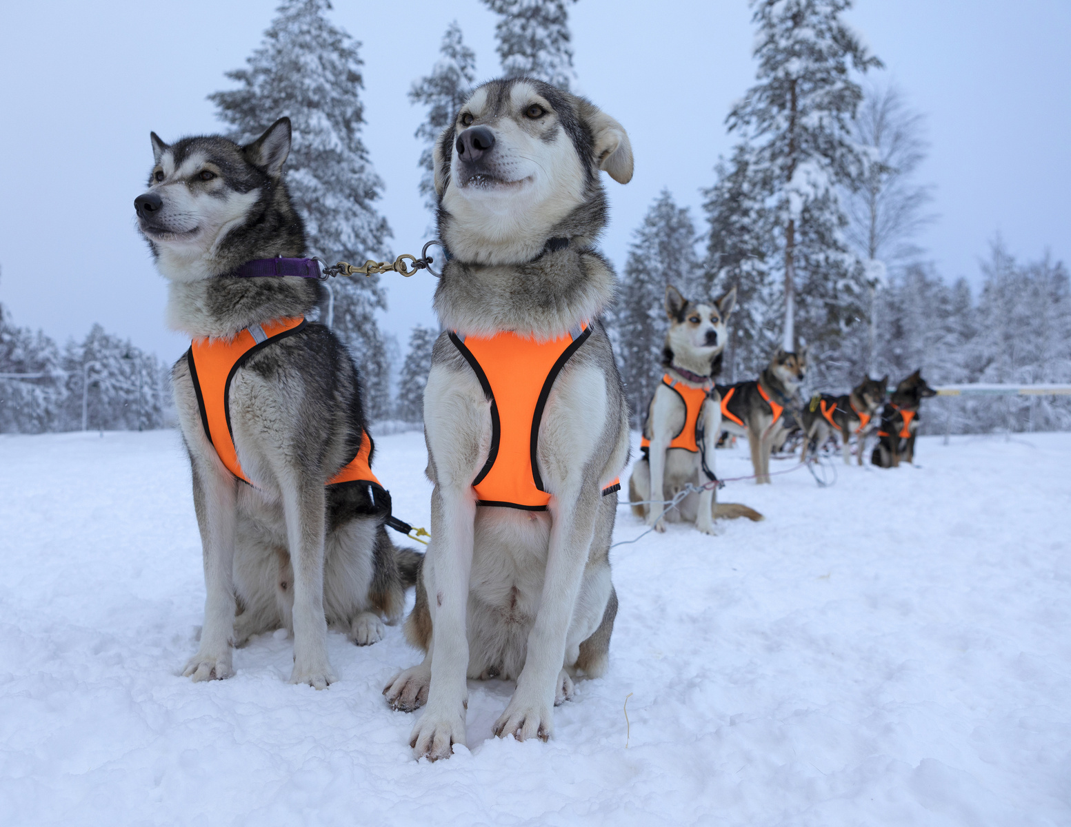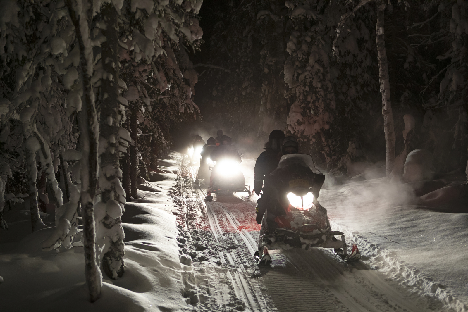 Vinterpadling rundt Vättern, se på reinsdyr i Malå, vandre gjennom Storforsen nasjonalpark til den største fossen i Skandinavia, trugetur i Harads og hundespannkjøring i Kiruna: Over på norsk side er det mulig å dra på snøskuterturer i Karasjok, blant annet.