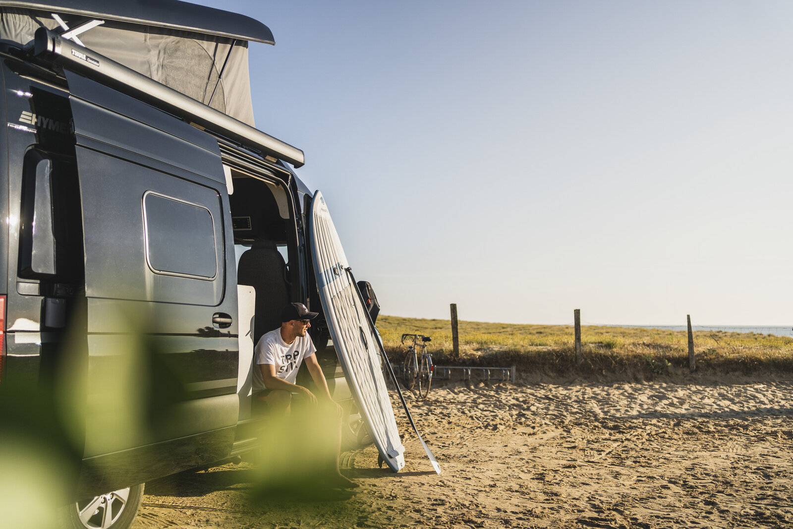 2 surfare, 8 brädor och 1 HYMER Free S 600! Allt började för tio år sedan: Stefan Klare kom på idén att bygga uppblåsbara stand up paddelbrädor (SUP) – Med specialutvecklad teknik ska de nya skivorna från märket TRIPSTIX vara tunnare, stabilare och framför allt med mer prestanda. En hel del prototyper har skapats genom åren och nu ska material till den färdiga produkten filmas för marknadsföring. I slutet av juni 2021 är Stefan och Chris på väg mot surfarnas paradis med HYMER Free S 600.